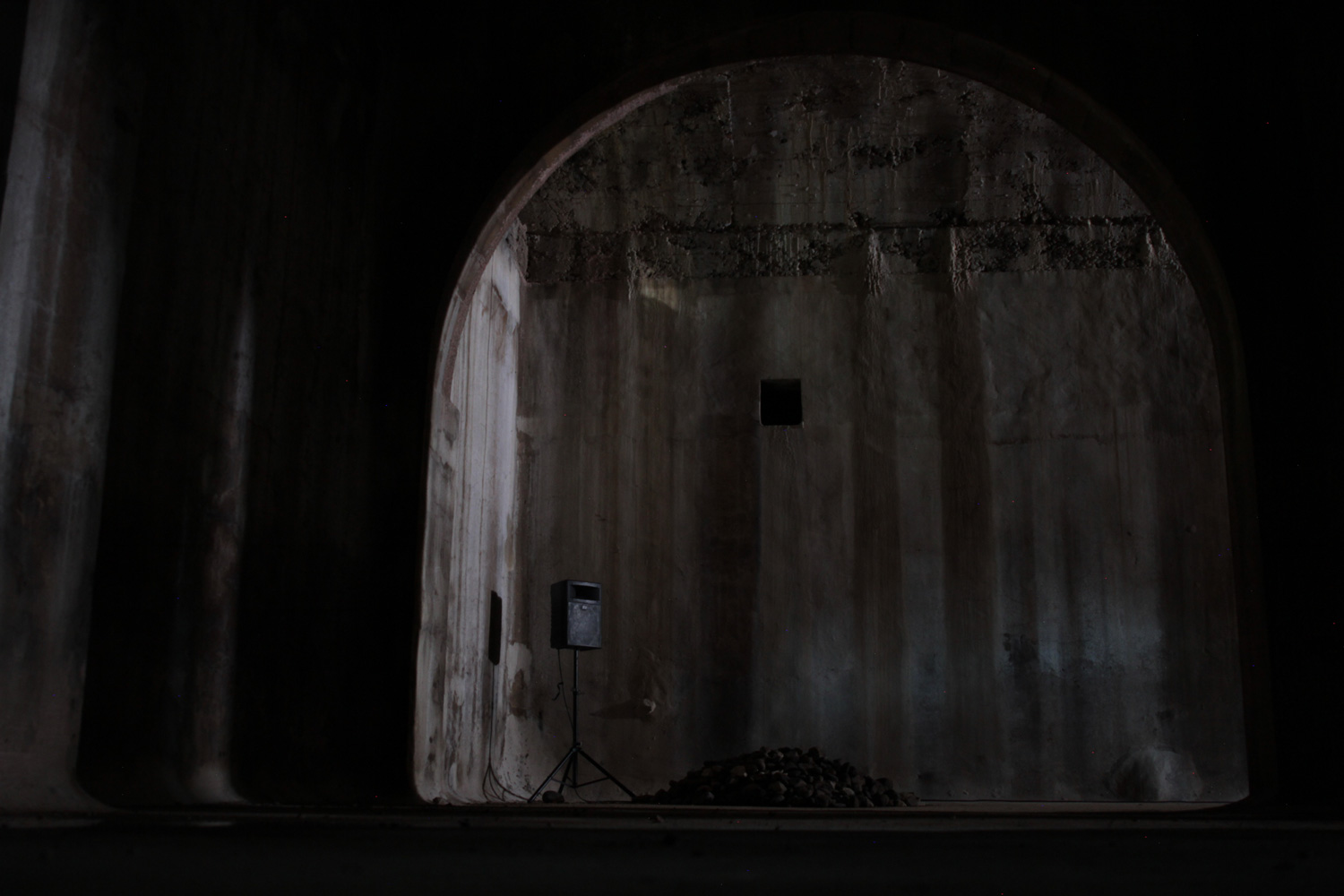 The soundwork gathered a series of recordings of the surrounding urban landscape resonating inside the deposit. Departing from low-pitched and deep sounds —of car engines, of the sonic substrate of the streets— sounds from the park —its fauna, its vegetation, its inhabitants— were progressively being mixed until water became the common thread leading towards a more synthetic piece. Towards the end a more contemporary representation of water prevailed —merging sounds recorded in the new water deposits and the sewage systems of the city— focusing on the technologies of water as a commodified means within urban space.